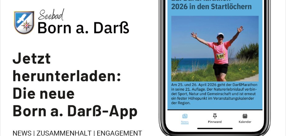 Die Born a. Darß-App steht kostenlos im App Store und Google Play Store zum Download bereit: https://born-darss.app/app.